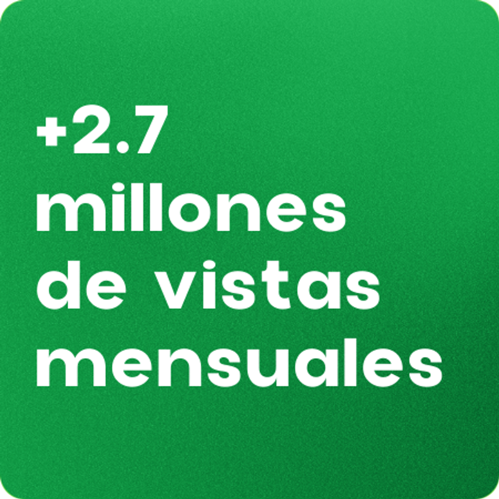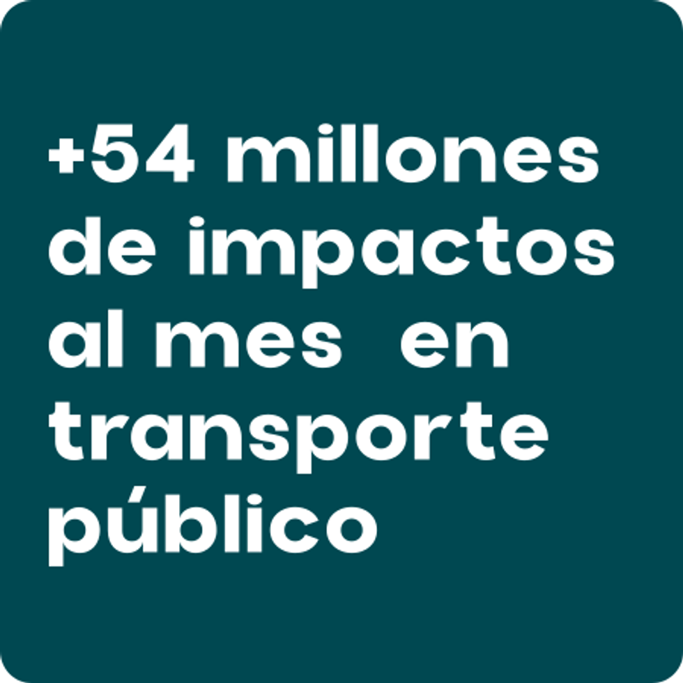 Gracias a nuestra presencia en los principales sistemas de transporte como el Metrobús, Tren Suburbano y Mexibús, nuestra red de miles de pantallas audiovisuales genera más de 54 millones de impactos cada mes. Esto nos convierte en una plataforma de comunicación masiva única, que conecta con una audiencia cautiva, receptiva y en constante movimiento, garantizando una recordación de marca que pocos medios pueden igualar.